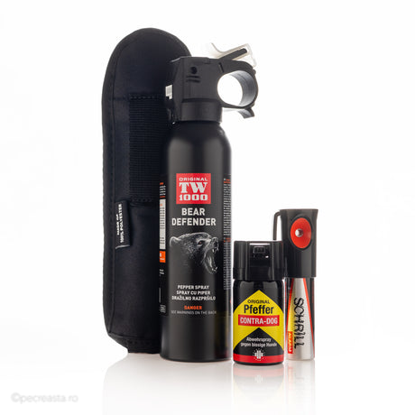Set Complet Protecție Animale TW1000 (Spray Urs + Spray Caine + Alarmă)